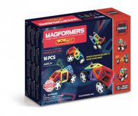 Magformers Vegicle WOW 16 to klocki z wbudowanymi silnymi magnesami neodymowymi, które zawsze się przyciągają. Wystarczy zbliżyć do siebie ściankami dwa klocki, a one natychmiast ze sobą się połączą. Za pomocą klocków wzorowanych na kształt figur geometrycznych można zbudować wspaniałe trójwymiarowe budowle. W zabawie można korzystać z dołączonej do zestawu instrukcji lub innych przykładów zamieszczonych na stronie magformersworld.com lub własnej wyobraźni.Wiekod 3 lat