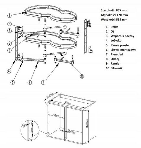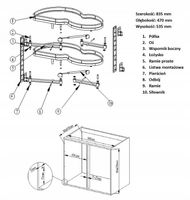 Narożny kosz cargo „nerka" to rozwiązanie, dzięki któremu zagospodarowanie narożnej szafki kuchennej jest proste i wygodne. Dwie półki z antypoślizgową powierzchnią wysuwają się niezależnie od siebie, całkowicie poza szafkę. Duże obciążenie pozwala trzymać na nich nawet ciężkie przedmioty(nawet do 20 kg na półkę).
