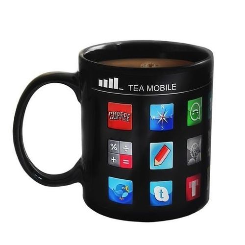 Nie możesz się oderwać od swojego smartfona? Przez pół dnia smarujesz palcem po tablecie? Producent tego kubka postanowił docenić Twoją pasję i stworzył kubek, który po zalaniu gorącą wodą ujawnia najbardziej przydatne aplikacje. Tea mobile nie pozwoli żebyś pił zimną herbatę lub kawę, dlatego gdy twój napój ostygnie, to appki znikną z kubka. Oczywiście pojawią się ponownie gdy tylko poczują ciepło wypełniające kubek. Teraz nie ma już wątpliwości, że na wszystko znajdzie się aplikacja, szkoda, że jedna z nich nie zrobi nam kawy czy herabty.