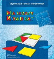 Magiczny kwadrat jest układanką rozwijającą funkcje wzrokowe. Przygotowuje do szybkiego przeprowadzania analizy bodźców wzrokowych. Włącza w swój zakres ćwiczenia myślenia.Pobudzanie analizatora wzrokowego wpływa w sposób naturalny na rozwój pozostałych funkcji poznawczychStymulacja analizatora wzroku jest konieczna u wszystkich dzieci, ponieważ aktywne spostrzeganie wzrokowe, jest obok percepcji słuchowej, prymarnym etapem w rozwoju inteligencji oraz uczenia się komunikacji językowej.Magiczny kwadrat jest materiałem symbolicznym, abstrakcyjnym. Zestaw wielu figur łączy się, by w konsekwencji mógł powstać kwadrat. Pomimo, iż dziecko może dostrzegać takie elementy w życiu codziennym, należy takie obrazy, uczynić przedmiotem świadomego uczenia. W przyszłości będzie to ważne dla rozumienia symbolicznej funkcji języka, jak i dla nauki czytania i pisania.W pierwszym etapie pracy dorosły wybiera elementy w jednym kolorze i składa je w ramce. Dziecko obserwuje działanie, by mogło samodzielnie składać kwadrat według podanego wzoru.Następnie dorosły pokazuje dziecku wzór i analizując go krok, po kroku wspólnie z dzieckiem składa kwadrat.Kolejnym etapem jest samodzielne działanie dziecka. Układa ono kwadraty według załączonych wzorów. Proste wzory są rozdzielone kreską. Trudniejsze nie zawierają kresek łączących elementy. W tym przypadku dziecko, na podstawie wcześniejszych doświadczeń, musi domyśleć się, w jaki sposób złożyć kwadrat.Zadaniem dziecka jest np.- ułożenie kwadratu w wybranym kolorze. Wśród wszystkich figur musi wybrać takie elementy, które będą pasowały do danej kategorii,- ułożenie kwadratu składającego się z dwóch, trzech kolorów.Po kilkakrotnym ułożeniu kwadratów według załączonych wzorów, dziecko, może układać samodzielnie kwadrat, według własnego pomysłu.Matariał:- kolorowe elementy z płyty PCV (pocięte kwadraty na 4,6,8 i 10 elementów w czterech kolorach)- podkładka do układania kwadratu z białej płyty PCV- 49 wzorów do układania z różnym stopniem trudności- instrukcja wraz z trudniejszymi rozwiązaniami- twarde opakowanie