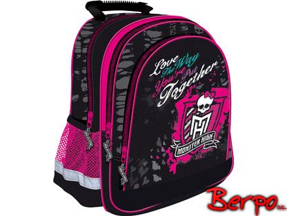 Pojemny 2-komorowy lekki plecak szkolny. Dodatkowa duża kieszeń środkowa i 2 boczne. Posiada usztywniane dno, szerokie profilowane szelki i elementy odblaskowe. Wykonany z wysokiej jakości materiałów. Kieszenie boczne z siatki – idealne na bidon lub butelkę z napojem. Uchwyt dla wygodnego noszenia w dłoni. Efektowne zdobienia różnorodnymi technikami. Bardzo praktyczny i wielofunkcyjny plecak z najmodniejszym w tym sezonie motywem Monster High !