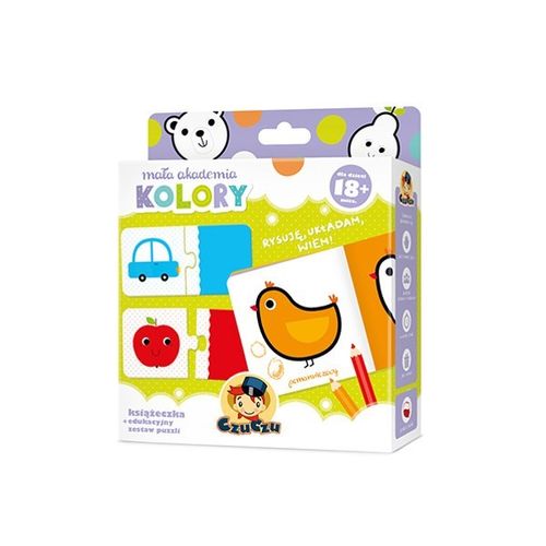 Mała akademia Kolory to książeczka do kolorowania i edukacyjny zestaw puzzli. To sposób na świetną zabawę, która jednocześnie: