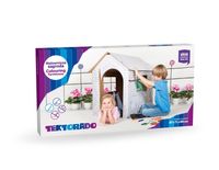 Domek został wykonany z materiału ekologicznego - tektury. Domek można rozkładać i składać po zabawie, a co ważne, po złożeniu nie zajmuje dużo miejsca. Paczka jest wąska, więc bez problemu zmieści się pod łóżkiem, czy za szafą, co jest niewątpliwą zaletą tej zabawki.
