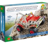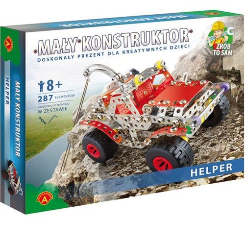 "Mały Konstruktor" to zabawka do samodzielnego montażu. Każdy model składa się z różnej wielkości i kształtów elementów metalowych, a także jest wzbogacony kolorowymi elementami z tworzyw sztucznych. Zestaw wyposażony jest w narzędzia, którymi można skręcić i rozkręcić pojazd. Elementy zestawów można ze sobą łączyć tworząc własne konstrukcje. Zabawki z tej serii rozwijają zdolności manualne, wyobraźnię przestrzenną, umiejętności techniczne i cierpliwość oraz pomagają kształtować proces zapamiętywania. To idealna zabawka dla przyszłych inżynierów i nie tylko. Zawartość opakowania: 287 elementów, instrukcja.