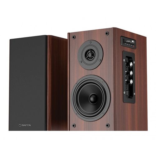 Manta KREON SPK916XSPK916 KREONTo zestaw dwudrożnych, stereofonicznych głośników o mocy wyjściowej RMS 40W. Ważną cechą zestawu są drewniane obudowy głośników, które wpływają na doskonalą jakość brzmienia. Znakomicie odwzorowują dźwięk, dzięki czemu słuchanie muzyki, granie czy oglądanie filmów przyprawia o dreszczyk emocji.Zestaw można podłączyć do:- Komputerów- Domowych systemów HIFI- Telewizorów- Konsoli gier- Przenośnych odtwarzaczy audioZ prawej strony jednego z głośników znajduje się panel sterujący a na nim regulatory głośności, tonów wysokich oraz niskich, gniazdo USB, gniazdo SD, przyciski sterujące i equalizerZalety zestawu SPK916 KREON:- Wsoka jakość i przestrzenność dźwięku- Czysty, głęboki bas- Uniwersalność zastosowań- Drewniana, stylowa obudowa głośnikówEAN: 5902510605551Gwarancja: gwarancja zewnętrzna 24 miesiąceKod dostawcy: SPK916XRodzaj: KomputeroweSystem: 2.0Przeznaczenie: MuzykaStacja dokująca: NieRegulatory: Regulacja poziomu głośnościMoc głośników (sumaryczna): 40 WPasmo przenoszenia (min.): 60 HzPasmo przenoszenia (maks.): 18 kHzCzułość: 90 dBKomunikacja bezprzewodowa: BluetoothZłącza: AUXZasilanie: SiecioweKolor: DrewnoWymiary: 250 x 143 x 166 mmPozostałe parametry: - Zasilanie: AC 220 V/50 Hz- Bluetooth: 3.0, zasieg do 10 m- Gniazdo kart pamięci: SD- Wielkość głośnika: (4” + 1,5”) x 2