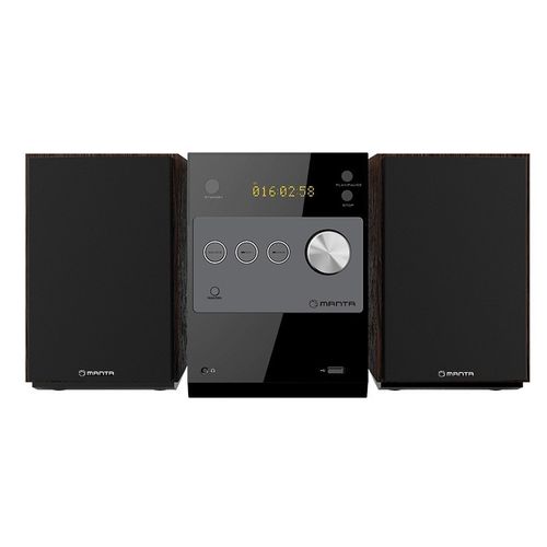 Manta Wieża MMS003MMS003 PRESTO MiniwieżaMiniwieża Manta MMS003 PRESTO to nowoczesny i elegancki zestaw Audio 2.0, który charakteryzuje się doskonałym brzmieniem.Urządzenie umożliwia odtwarzanie muzyki z płyt audio CD-R/RW oraz plików MP3 lub WMA z pamięci przenośnych USB. MMS003 PRESTO posiada wbudowane radio FM. Dwa 5-watowe głośniki zapewniają wyjątkowo czyste i wyraźne brzmienie odtwarzanej muzyki. Złącze USB oraz wejście AUX-IN pozwalają na podłączenie zewnętrznych nośników i urządzeń mobilnych z plikami dźwiękowymi, dzięki czemu możemy słuchać swoich ulubionych utworów. Dzięki dołączonemu w zestawie pilotowi obsługa MMS003 PRESTO jest bardzo prosta i intuicyjna.EAN: 5902510601621Gwarancja: gwarancja zewnętrzna 24 miesiąceKod dostawcy: MMS003System: MiniwieżaLiczba kanałów audio: 2.0Moc głośników (sumaryczna): 10 WTuner FM: TakPasma: FM (UKF)Odtwarzacz CD: TakOdczytywane formaty płyt CD: CD-RWOdczytywane formaty płyt DVD: BrakOdtwarzanie z USB: TakOdtwarzane formaty audio: WMAStacja dokująca: NieKomunikacja bezprzewodowa: Odbiornik USBZłącza: AUXAkcesoria w zestawie: PilotKolor: CzarnyPozostałe parametry: Pasmo przenoszenia: 20Hz-20KHz