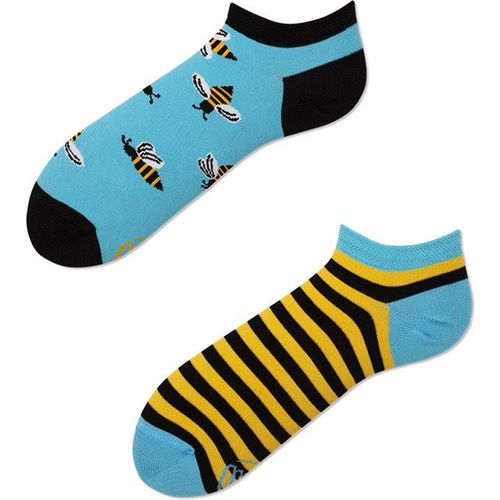 Odznacz się nietuzinkowym dodatkiemSkarpety Many Mornings to fuzja dziesięcioletnich doświadczeń łódzkiego włókiennictwa, regionalnych pasji i unikalnego podejścia do designu. Skarpetki są w 100% polskie i pochodzą z Aleksandrowa Łódzkiego. Ich twórcy stawiają na wysoką jakość, dlatego korzystają w produkcji z najlepszych surowców. Te skarpetki pomogą Ci poczuć się niebanalnie – nieważne czy siedzisz w pracy, jedziesz autobusem na zakupy czy idziesz na spacer. Kolorowe skarpetki Many Mornings dodadzą Twoim stylizacjom trochę zdrowego szaleństwa. Bee Bee Low to model z motywem w pszczoły, o wygodnym fasonie stopek. Lewa i prawa skarpeta mają oddzielne, inne wzory, w tej samej kolorystyce. To oryginalny dodatek, który odmieni Twoje szare poranki w dżunglę kolorów!Materiał wykonania: 80% bawełna, 17% poliamid, 3% elastan Kolorowe, oryginalne wzoryPolska marka z Aleksandrowa ŁódzkiegoWysoka jakość wykonaniaPołączenie rzemieślniczych tradycji z nowoczesnym designem