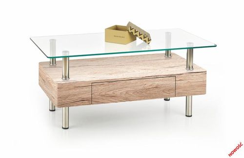 wymiary: 100/50/42 cm, materiał: szkło / MDF laminowany / stal chromowana, kolor: dąb san remo