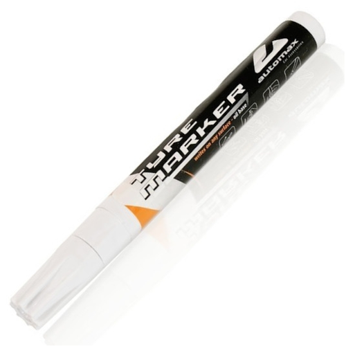 Marker do opon w kolorze białym. Dzięki zastosowaniu wysokiej jakości wkładu farba jest odporna na działanie warunków atmosferycznych i szybko wysycha.