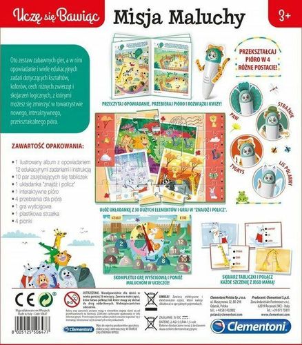 Zestaw ze wspaniałą historią do czytania, mnóstwem zabawnych gier i ciekawych quizów, rozwiązywanych przy użyciu intrygującego interaktywnego długopisu. Zawiera ilustrowany album, opowiadający historię i zawierający ćwiczenia edukacyjne, ukierunkowane na kształty, kolory i logiczne skojarzenia z cechami zwierząt. Dziecko może przyozdobić elektroniczny długopis różnymi kolorowymi akcesoriami z kartonu, przeobrażając go w jedną z 4 zabawnych postaci. W skład zestawu wchodzi również układanka oraz pasujące do siebie, składane elementy z edukacyjnymi quizami.