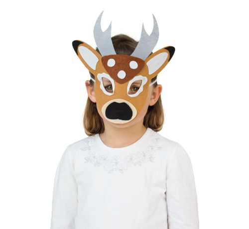 Maska filcowa jest idealnym uzupełnieniem stroju Jelonka dla dzieci lub jako samodzielny gadżet na przedstawienia, teatrzyki, bale karnawałowe oraz do zabawy. Twoje dziecko może się szybko wcielić w nową rolę i poczuć jak jelonek Bambi.