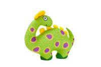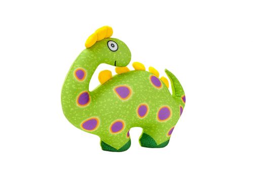 Maskotka „Dinozaur” wypełniona kuleczkami wykonanymi z polistyrenu (styropian). Sypkie wypełnienie pozwala dość swobodnie zmieniać kształt zabawki – wyginać, skręcać. Przytulanka może służyć jako poduszka dla dziecka.