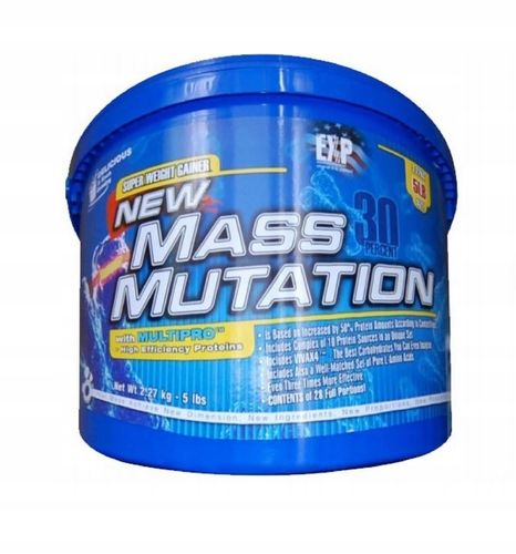 NEW MASS MUTATION to preparat budulcowy najnowszej klasy opracowany w 2009r. Jego przewaga wobec podobnych odżywek wynika z podwyższonej do 30% zawartości białka a co za tym idzie, obniżonej wartości ładunku glkemicznego w porcji a zwiększonej całkowitej zawartości aminokwasów. Najnowsze badania naukowe jednoznacznie wskazują na przewagę takich produktów, dlatego najnowsze produkty osiągają wyższą skuteczność.