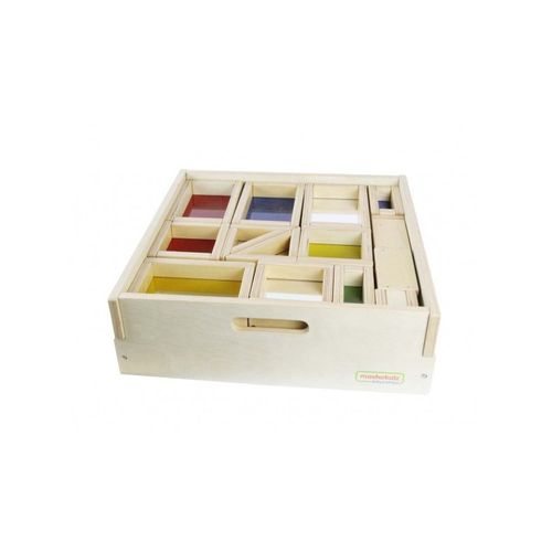 Niecodzienny zestaw klocków drewnianych, które opatrzone zostały kolorowymi szkiełkami akrylowymi. Można przez nie patrzeć, by ujrzeć świat w nowych kolorach, ale każda stworzona z nich konstrukcja również będzie niesamowita i zapierająca dech w piersiach! W zestawie znajduje się aż 29 klocków.