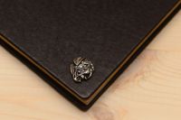 Piękna twarda okładka w ciemno brązowym kolorze, gładkie kartki.