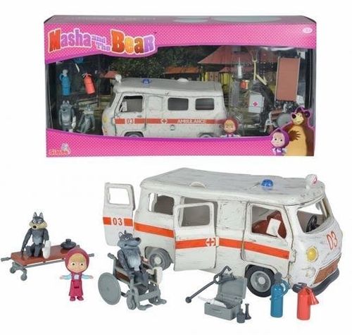 "Masza i Niedźwiedź" to niezwykle zabawna animacja, opowiadająca o losach małej dziewczynki Maszy oraz zasłużonego, cyrkowego misia Niedźwiedzia. Bohaterowie bajki przeżywają wiele ciekawych i zaskakujących przygód, okraszonych fantastycznym humorem. W zestawie: figurka Maszy, 2 figurki wilków, wózek inwalidzki, łóżko szpitalne, ambulans, pozostałe akcesoria.