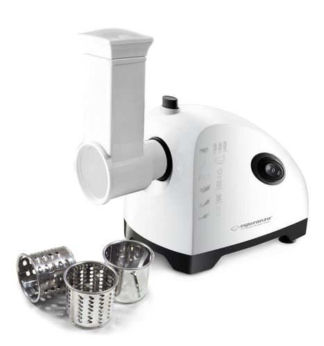 Maszynka mielenia do mięsa Esperanza RISSOLE to nowoczesne i funkcjonalne urządzenie, które z powodzeniem można używać w każdej kuchni. Trzy tarcze o różnych średnicach otworów (2,7 mm, 4 mm, 8 mm) można stosować nie tylko do mielenia mięsa ale i innych produktów spożywczych. Urządzenie posiada dodatkowe nasadki do wyrabiania kiełbas i kulek kebbe. Urządzenie jest również wyposażone w zestaw szatkownic, dzięki którym można z łatwością uzyskać cieńsze lub grubsze wiórki lub plasterki. Smacznego!