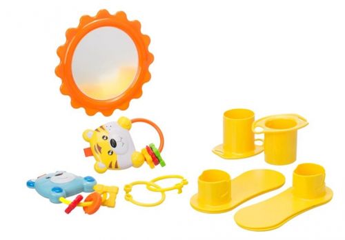 Dołączone do niej kolorowe, plastikowe zabawki w żywych kolorach zachęcą każdego malucha do zabawy, a dodatkowo będą pobudzać zmysły i wspomagać rozwój motoryczny każdego maluszka.