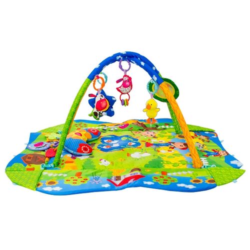 Mata wykonana jest z bardzo przyjemnego w dotyku materiału. Kolorowe grafiki wzbudzają ciekawość dziecka oraz pomagają rozwijać wzrok.