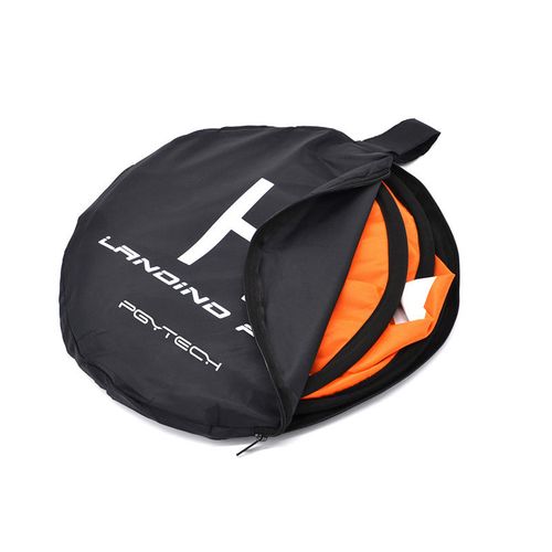 Lądowisko do startowania / lądowania drona. Idealnie nadaje się w warunkach przy których pęd śmigieł drona mógłby wzbijać kurz, piach, liście, gałązki itp. Średnica maty wynosi 75cm, wykonana jest z wodoodpornego nylonu. Posiada dwie strony: lewą niebieską oraz prawą pomarańczową.