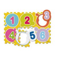 Miękka mata do aktywności fizycznej oraz treningu umiejętnosci taktycznych! Miękka Mata Puzzle do zabawy, składana z 6 elementów to bardzo wygodna, miękka mata, na której dziecko może się bawić, raczkować, turlać, a jednocześnie powoli poznaje cyferki. Poszczególne obrazki z cyframi można wyjąć z puzzla i zaproponować dziecku zabawę w dobieranie elementu do powstałego w macie kształtu. Obrazki na macie są w żywych, nasyconych kolorach, a kształty łatwe do rozpoznania. Mata ma wymiary 93x62 cm. Wykonana jest z siatki polietylenowej. Maty są odporne na przegryzienia. Wykonane są z trwałych, bezpiecznych materiałów o neutralnym zapachu. Matę można myć.