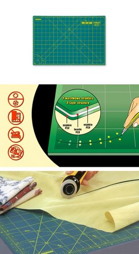Mata model: RM-IC-C, to "samogojąca" mata w kolorze zielonym przeznaczona do cięcia nożami krążkowymi. Mata jest dwustronna, z nadrukowaną podziałką centymetrową