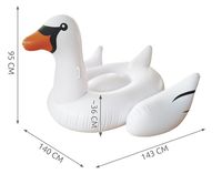Dmuchany łabędź do pływania to świetny gadżet wakacyjny, który przykuje uwagę każdego urlopowicza. Łabędź wykonany jest z PVC. Pomieści 1 osobę. W zestawie łatka naprawcza. Posiada uchwyty do przytrzymania się, które ułatwiają wchodzenie.