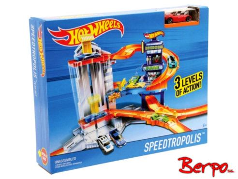 Ten ekscytujący zestaw to gwarancja świetnej zabawy w wielkim mieście. Z tym zestawem umożliwiającym puszczanie samochodzików na wielu poziomach dzieci będą mogły bawić się w wyścigi, które rozpalą ich wyobraźnię. Wjedź windą do apartamentu na samym szczycie zestawu, a potem zjedź na dół. Możesz też zaparkować na drugim poziomie i wybrać się na wycieczkę po mieście. Łatwy w montażu i wygodny do przechowywania zestaw łączy się z innymi torami Hot Wheels®, umożliwiając budowę świata pełnego zabawy. W zestawie znajduje się jeden pojazd Hot Wheels®, dzięki czemu można zacząć zabawę zaraz po otwarciu pudełka.