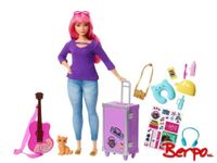 Z tym uroczym zestawem lalka Daisy będzie gotowa na podróż dookoła świata! Zestaw inspirowany serialem „Barbie Dreamhouse Adventures” zawiera wiele interesujących elementów, które pobudzają wyobraźnię. Różowo-włosa Daisy właśnie pakuje swoją wielką, fioletową, podróżną walizkę. Walizka otwiera się aby z łatwością zapakować do niej niezbędne akcesoria. Dodatkowo wyposażona jest w wysuwany uchwyt. Dzięki temu, bagaż prezentuje się niezwykle realistycznie. Oprócz tego w zestawie znajdziesz podróżne gadżety takie jak: poduszka, gitara, aparat, telefon i wiele innych. Nie zapomnij zabrać ze sobą swojego ukochanego pupila. Naklejki dołączone do opakowania pozwolą ozdobić walizkę Barbie, tak jak tylko sobie wymarzysz. Możesz też udekorować nimi pozostałe akcesoria. Teraz wygodnie i modnie ubrana laleczka może ruszać w podróż z walizką wypełnioną niezbędnymi rzeczami! Świetna robota! Zestaw idealnie sprawdzi się dla dziewczynek, które uwielbiają wymyślać nowe przygody Barbie.