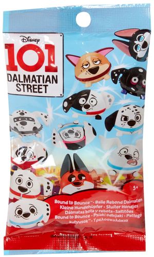 Saszetka niespodzianka Psiaki Odbijaki GBM10. Fani pokochają zabawę Psiakami-odbijakami z nowego serialu „Ulica Dalmatyńczyków 101”, inspirowanego popularną klasyczną bajką Disneya – teraz we współczesnym ujęciu! Każda piłeczka przedstawia inną postać i jest oryginalnie zaprojektowana – ma zabawne kształty i urocze szczegóły oddające wyjątkowy charakter danego pieska. Można je rzucać, podawać oraz odbijać – aby cieszyć się spontaniczną, dynamiczną zabawą! Śmieszne kształty sprawiają, że pieski odbijają się w przeróżnych kierunkach. Dzięki tym gumowym piłeczkom dzieci mogą oddać się pełnej przygód, nieprzewidywalnej zabawie i przenieść się w świat serialowych przygód. Każde opakowanie-niespodzianka zawiera jednego Psiaka-odbijaka (w tym uwielbiane postaci, takie jak Dylan, Dolly, DaVinci i nie tylko). Kolory i elementy dekoracyjne mogą się różnić.