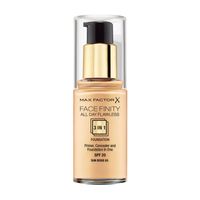 MAX FACTOR Podkład do twarzy FACEFINITY 3w1 nr 633 w 1 - baza, korektor, podkładPodkład przeznaczony dla osób poszukujących silnie kryjącego podkładu, matowego wykończenia, wyrównania kolorytu, oraz utrzymania doskonałego efektu przez cały dzień. Zapewnia długotrwałe krycie. Cząsteczki zwane mikro korektorami wzmacniają efekt krycia niedoskonałości. Siłę krycia podkładu można stopniować, w zależności od potrzeb.
