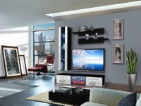 Meblościanka DRAD wykonana jest z płyty meblowej laminowanej, fronty z płyty MDF.
