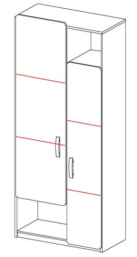 Za frontami znajdują się 2 półki po lewej i 2 półki po prawej stronie.