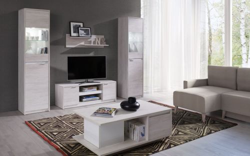 Dąb Biały / Dąb Biały + szkło Biały połysk