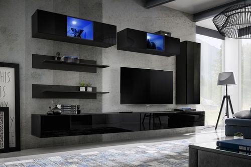 Elementy: 2 x RTV, 3 x szafka wisząca, 2 x półka wisząca