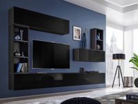 czarny mat + front: czarny połysk / regał wiszący: biały mat