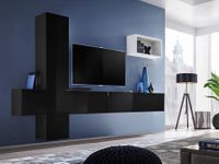 czarny mat + front: czarny połysk / regał wiszący: biały mat