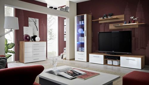dołek RTV BOON II, witryna NOE I, komoda FART, półki wiszące MIX