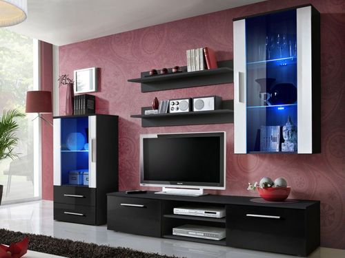 dołek RTV BOON II, półki wiszące MIX, witryna NOE II, witryna NOE IV