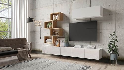 B - Korpus Biały / Front Biały połysk + Dąb Artisan