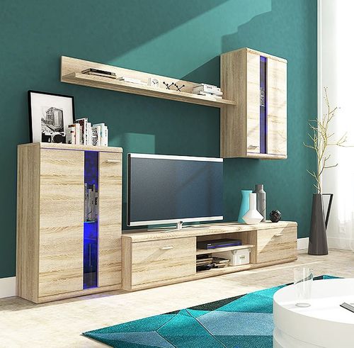 Zestaw składa się z 4 elementów: witryny stojącej, stolika RTV, witryny wiszącej oraz półki wiszącej.