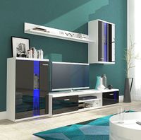 Zestaw składa się z 4 elementów: witryny stojącej, stolika RTV, witryny wiszącej oraz półki wiszącej.