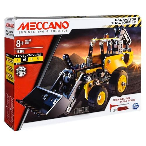 Kolekcja firmy Meccano umożliwia konstruowanie szeregu modeli w oparciu o zestaw metalowych części, które łączą się za pomocą śrubek i nakrętek. Dzieci mogą budować modele z jednego zestawu w oparciu o dołączone do opakowania instrukcje, jak również wyrazić swoją twórczą wyobraźnię poprzez tworzenie unikalnych wzorów według własnego pomysłu. Zestaw zawiera 209 el. oraz 2 narzędzia.