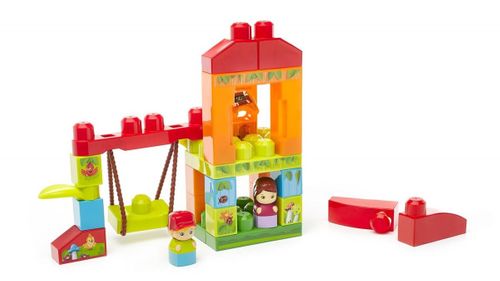 Przed Wami długie i radosne godziny huśtania się i zabawy w tym kolorowym domku na drzewie! A towarzyszyć Wam będzie dwójka malutkich przyjaciół. Zbuduj domek, a następnie posadź figurkę chłopca lub dziewczynki na ruchomej huśtawce. Figurki mogą też wspiąć się na górę i otworzyć okienko, aby oglądać świat z innej perspektywy! Ten domek na drzewie – stworzony specjalnie z myślą o małych rączkach – można rozbudować w dowolny sposób, na przykład na boki lub do góry. Dzięki temu za każdym razem przeżyjesz nową przygodę!
