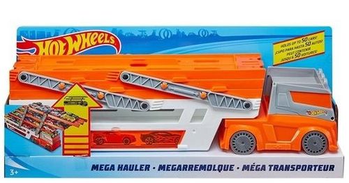 Tranporter Hot Wheels od firmy Mattel jest kompatybilny z pozostałymi torami i zestawami z serii. Można ją rozłożyć, budując tym samym mega transporter, który pomieści aż 50 autek na sześciu kondygnacjach. Zestaw nie zawiera dodatkowych samochodzików.