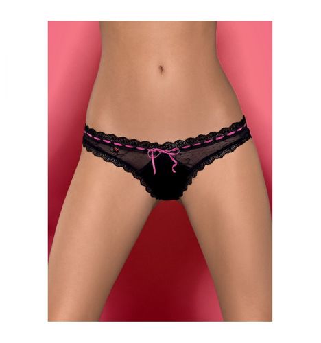 - kuszące, czarne stringi z różową aplikacją