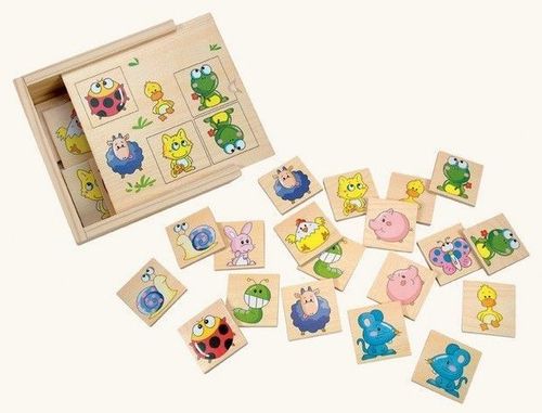 Ta tradycyjna gra teraz również w drewnianym wydaniu. Obróć drewniane klocki nadrukiem w dół i odgaduj gdzie ukryte są pary. Kto zgadnie zabiera parę. Osoba z największą ilością par wygrywa.