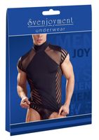 Show your partner how sexy you look in this stretchy masculine shirt made out of two types of net. This shirt is in a trendy stripe design and has a stand-up collar and short sleeves. As soon as she sees you in this shirt she will not be able to resist you.