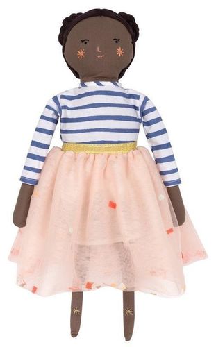 Bawełniana lalka. Posiada wełniane włosy, haftowane detale oraz zdjemowane ubranka. Wypełnienie: 100% poliester. Wymiary: 18 x 49 x 7 cm.