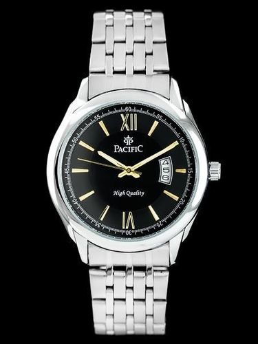 Kolorystyka: tarcza w kolorze czarnym, koperta i bransoleta w kolorze srebrnym, indeks w kolorze złotym